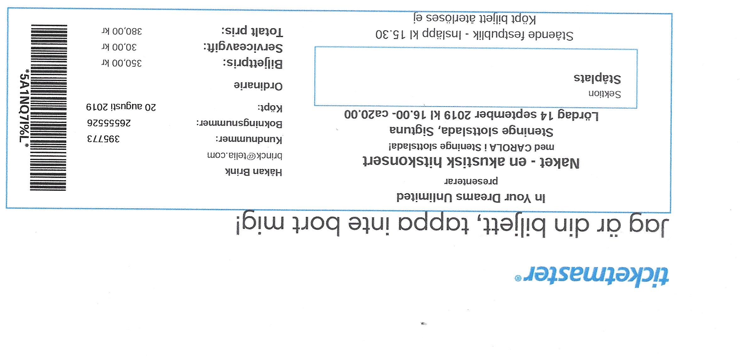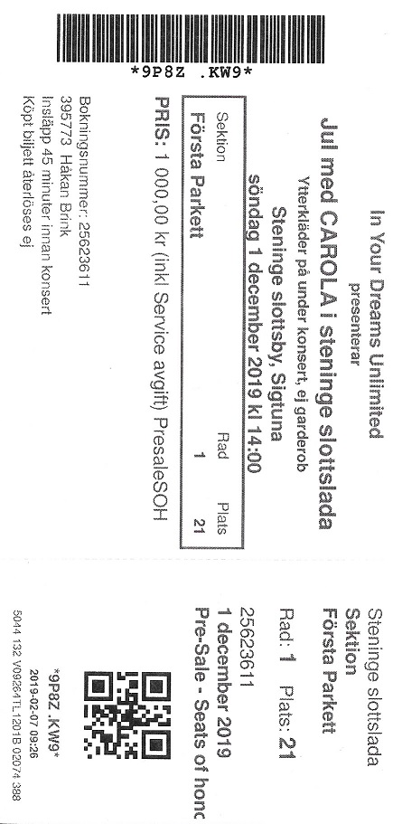 Mina Biljetter 1984 - 2019