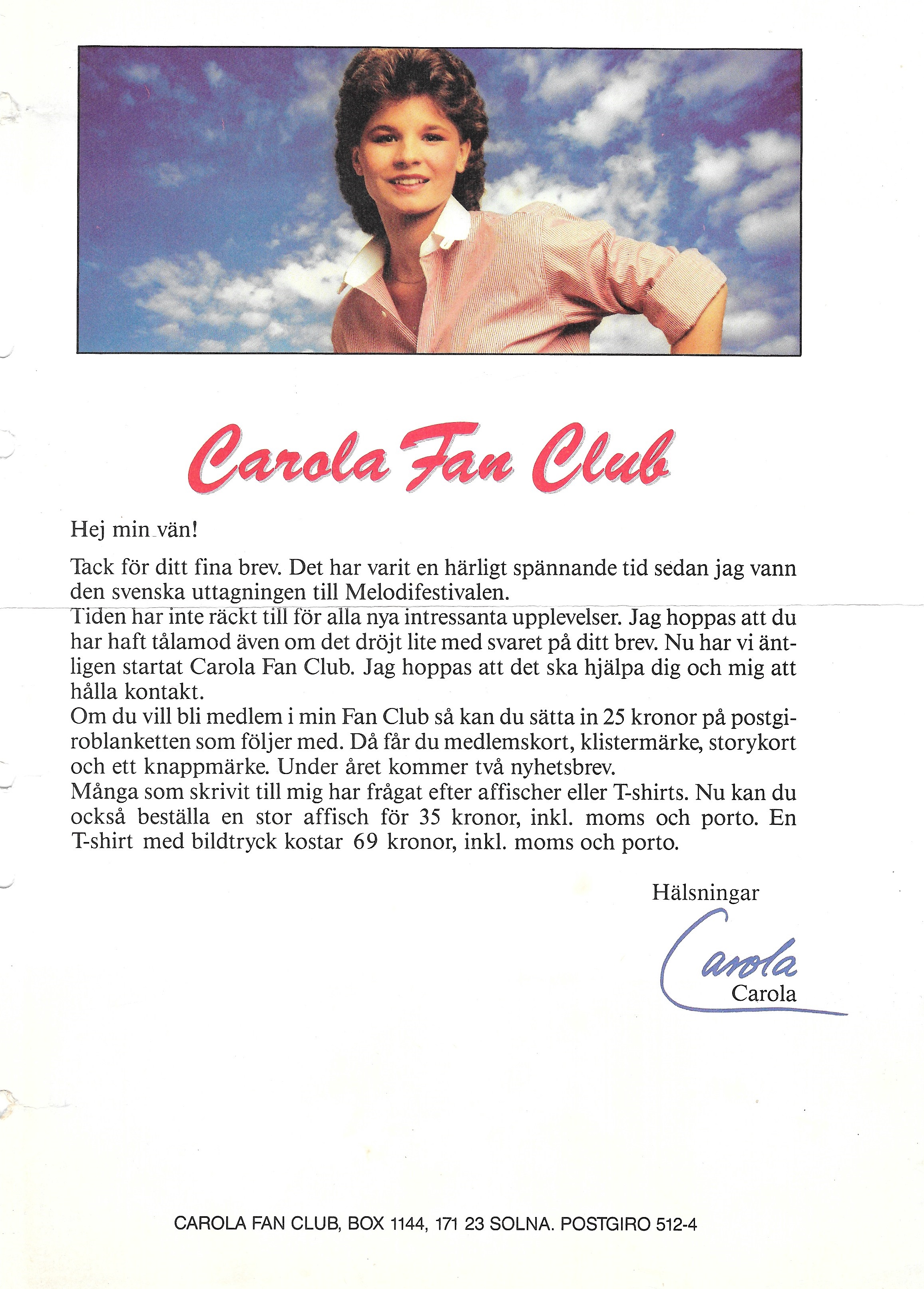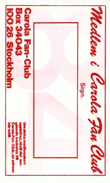 Fan Club kort 1984 |